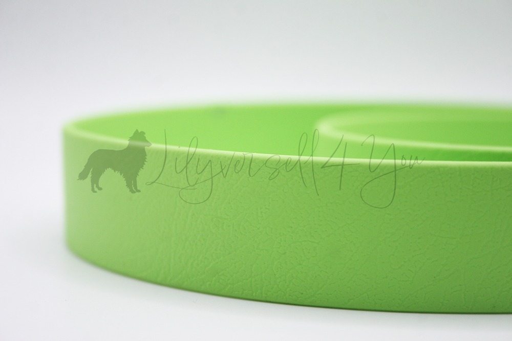 Ich verwende Biothane® in verschiedenen Breiten, Farben und sogar bedruckt – ideal für Kund:innen, die ein robustes, farbenfrohes und langlebiges Hundezubehör suchen.