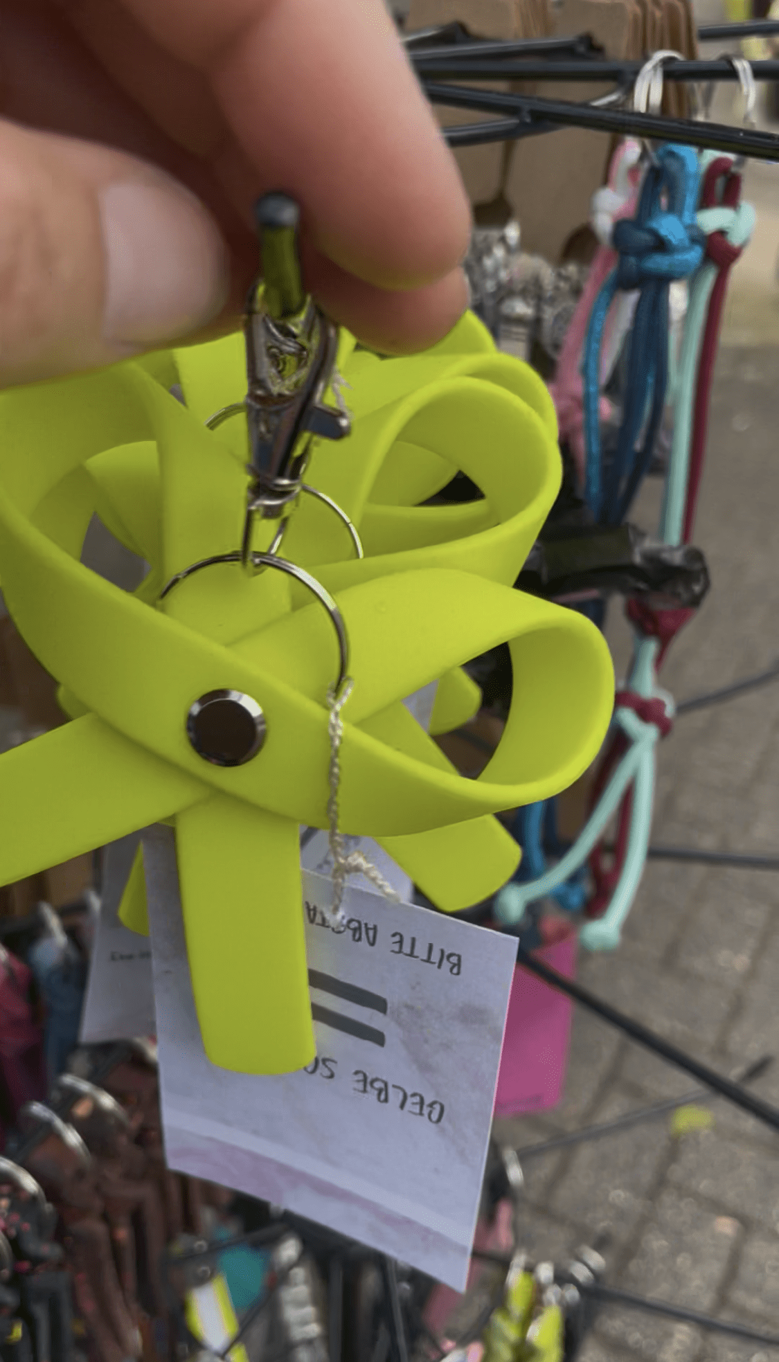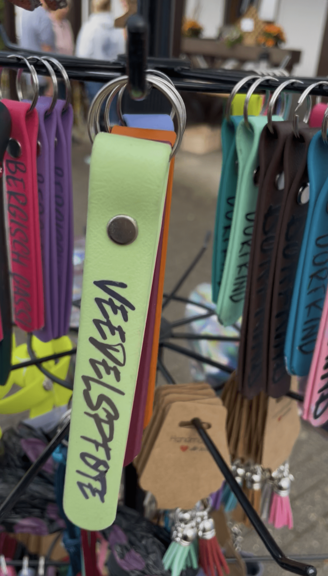 Am beliebtesten waren die Schlüsselanhänger mit regionalem Bezug – besonders „Kölsch Mädche“ und „Dorfkind“. Aber auch „Veedelspfote“ wurde oft mit einem Lächeln gelesen – und manchmal direkt mitgenommen.